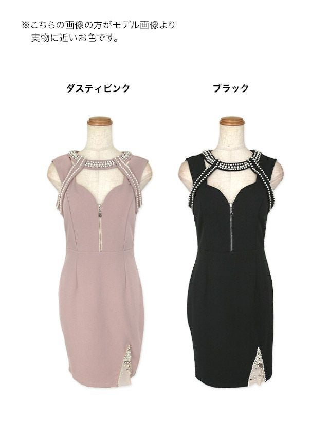 ノースリーブパールバストカットジップタイトミニドレスの商品詳細1
