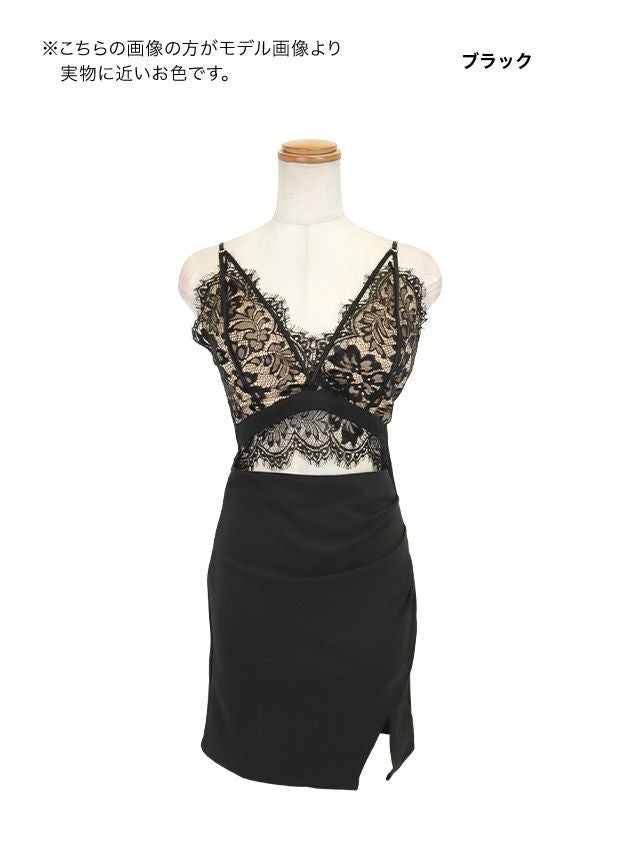 5. バストコード ヌーディーレース セクシー ウエストカット キャミソール 谷間魅せ タイトミニドレス (XSサイズ~Lサイズ) (上ノ堀結愛/キャバドレス着用)