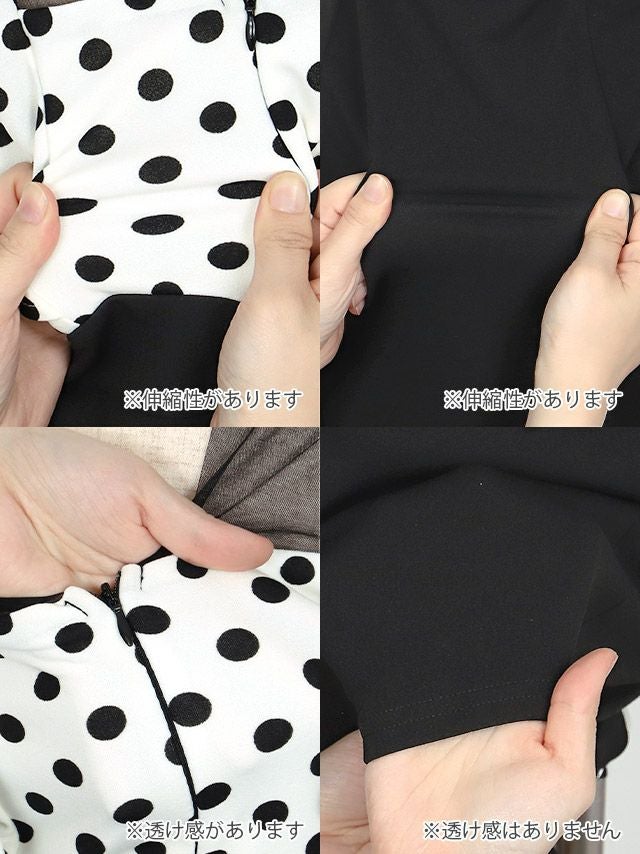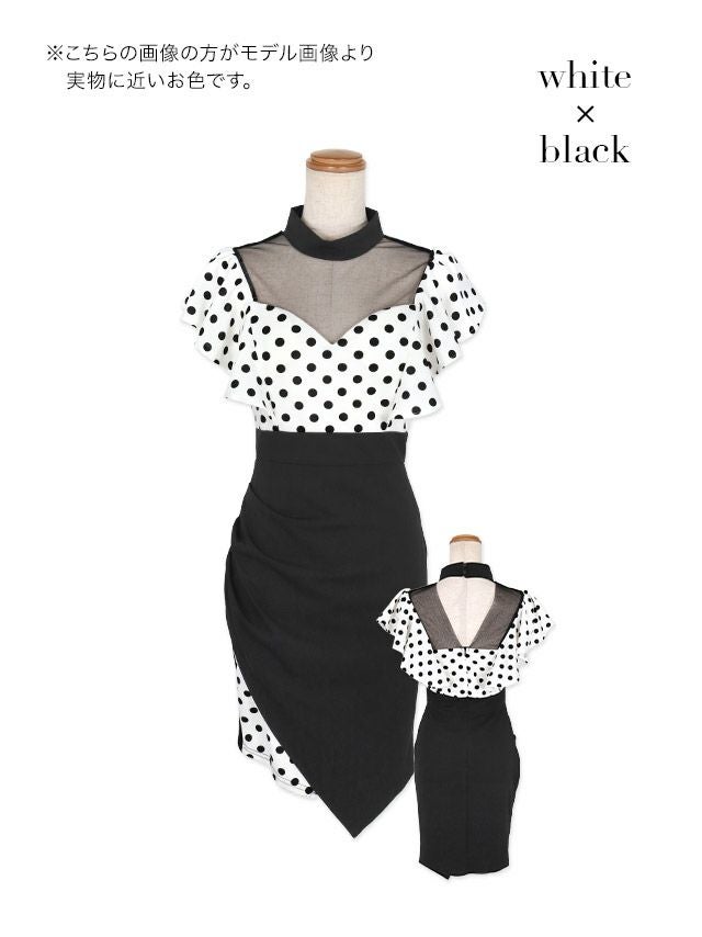ハイネックシアー半袖ドットフリル袖切り替えアシメタイトミニドレスのカラーバリエーション