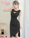 5. ワンカラー バストカット サイドパール ノースリーブ タイト 谷間魅せ 膝丈ドレス (Mサイズ) (めぐりっぷ/キャバドレス着用)
