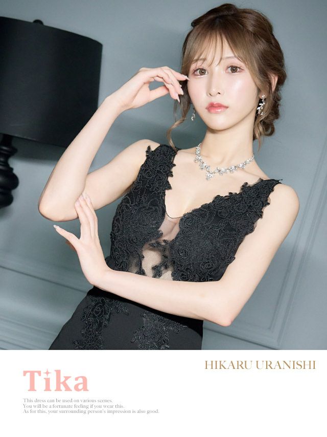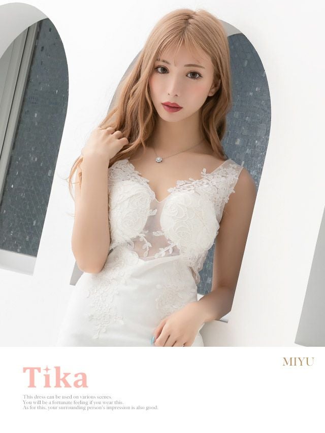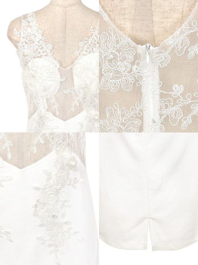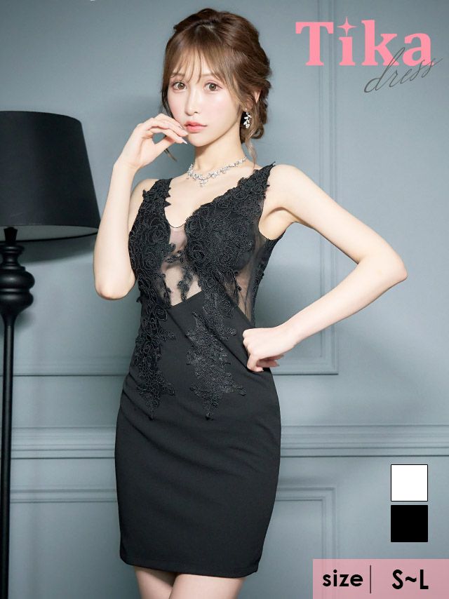 キャバドレス ミニ丈 大きいサイズ キャバクラ クラブ 白 黒 Tika ティカ ノースリーブシアーフラワー刺繍レースくびれ切替ワンカラータイトミニドレス