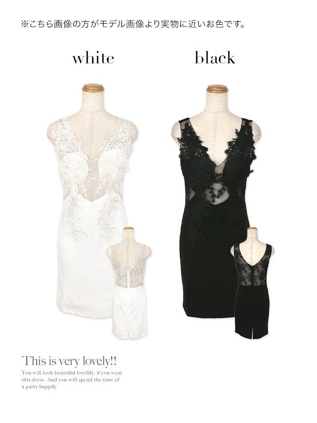 ノースリーブシアーフラワー刺繍レースくびれ切替ワンカラータイトミニドレスのカラーバリエーション