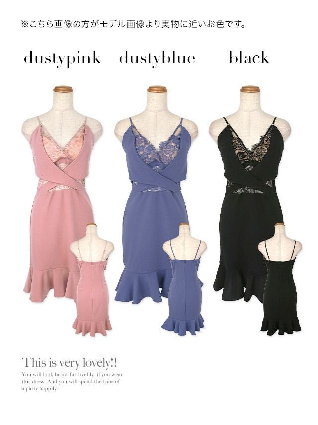 バストストリングキャミソールヌーディーレース切り替え裾フリルタイトミニドレスのカラーバリエーション