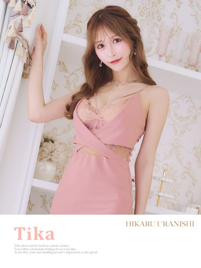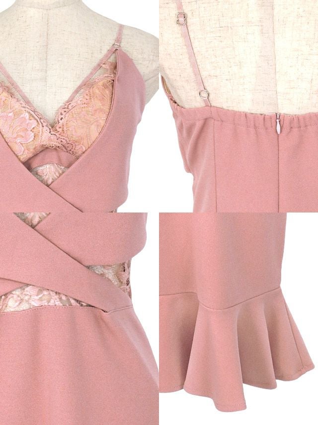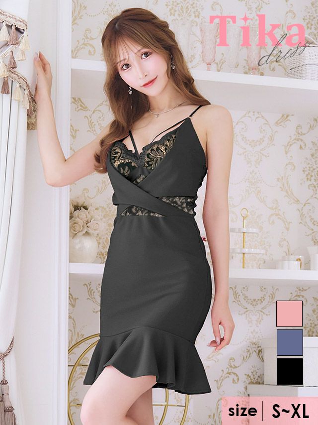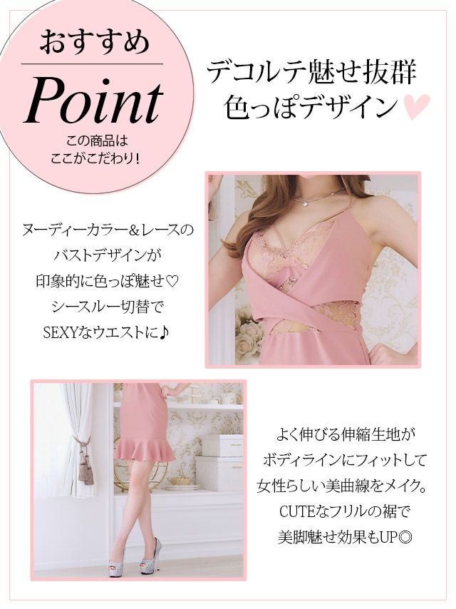 バストコード くびれ フリル キャミソール 谷間魅せ タイトミニドレス (Sサイズ~XLサイズ) (浦西ひかる/キャバドレス着用)