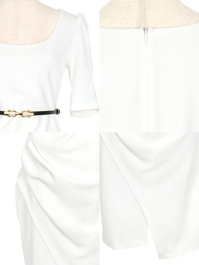 4. ベルト付き 袖あり ラップ タイト膝丈ドレス (Sサイズ~XXLサイズ) (天乃えま/キャバドレス着用)