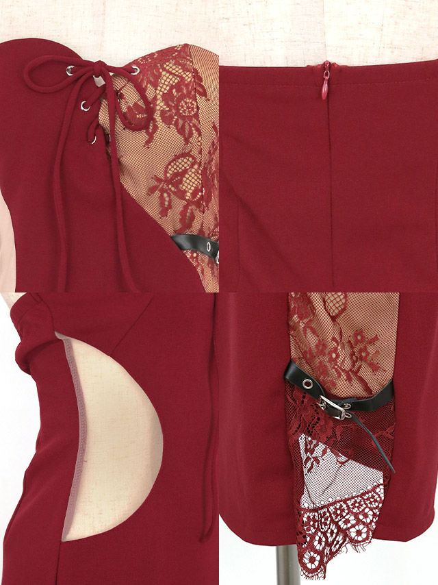 ベアハートカットレースアップサイドレースベルトデザインタイトミニドレスの商品詳細画像2