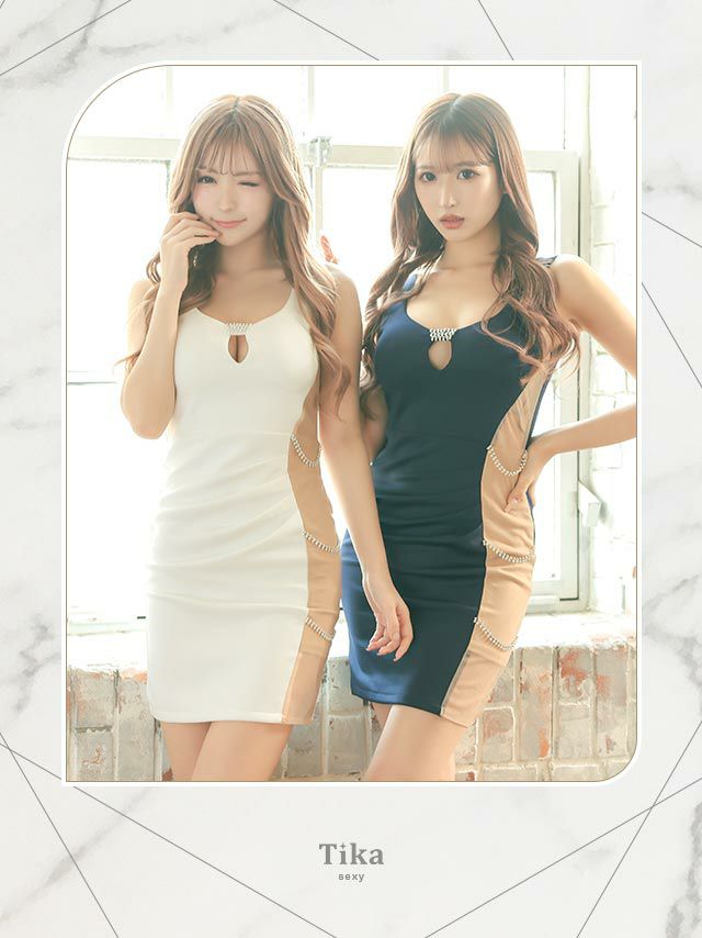 キャバドレス ミニ丈 大きいサイズ キャバクラ クラブ Tika ティカ バストカットアウトパール付きサイドヌーディービジュー切り替えノースリーブタイトミニドレス