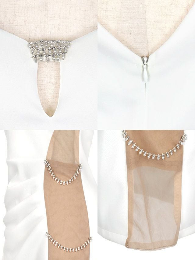 バストカットアウトパール付きサイドヌーディービジュー切り替えノースリーブタイトミニドレスの商品特徴