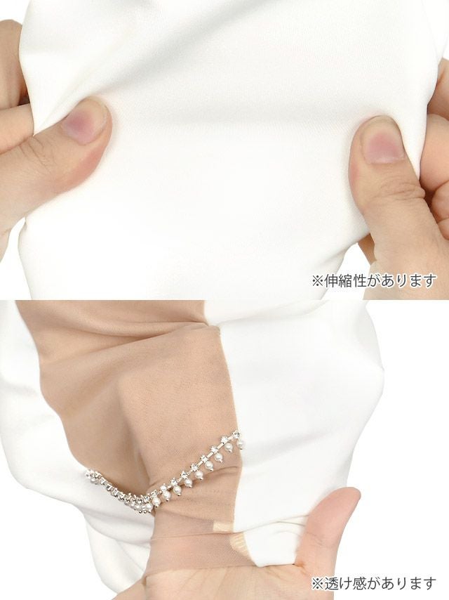 4. バストカット パール付き サイドヌーディービジュー切り替え ノースリーブ 谷間魅せ タイトミニドレス (Sサイズ~Lサイズ) (聖菜/キャバドレス着用)