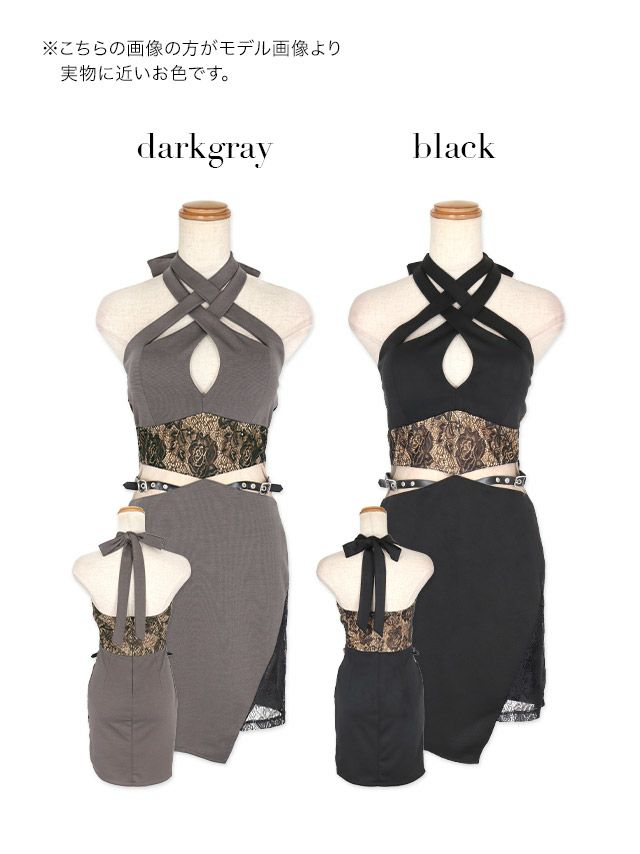 バストカットアウトクロスホルターネックアメリカンスリーブバックルシアーくびれタイトミニドレスのカラーバリエーション
