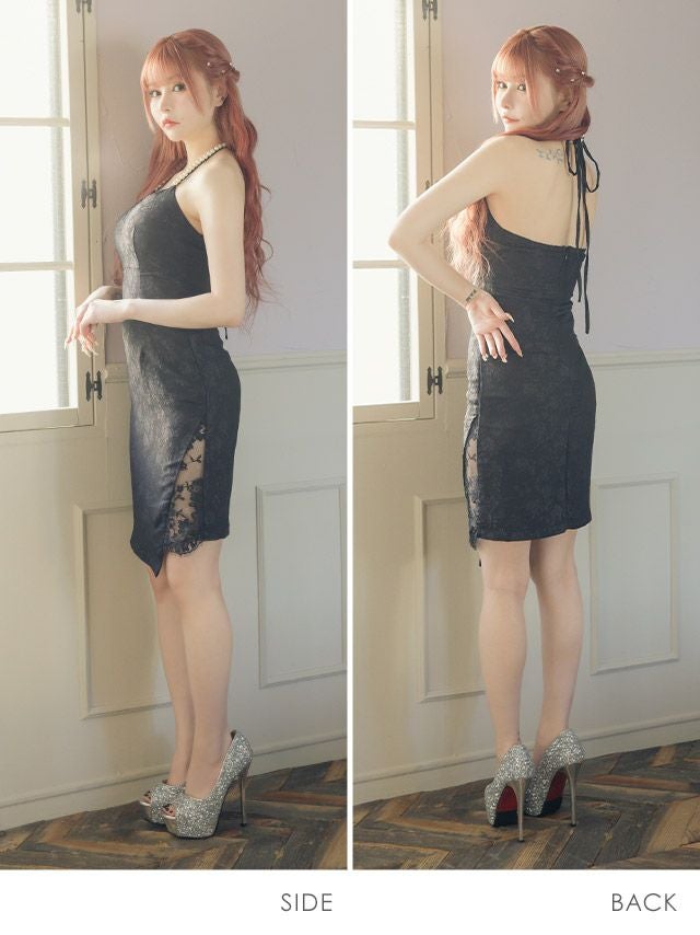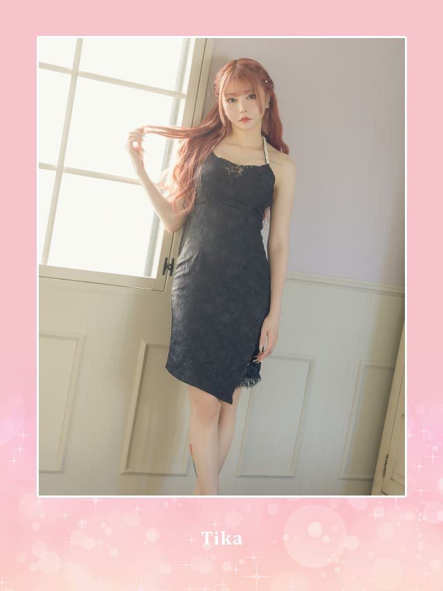 5. パールフラワー 総レース アシメホルターネック タイト膝丈ドレス (Sサイズ~Lサイズ) (黒崎みさ/キャバドレス着用)