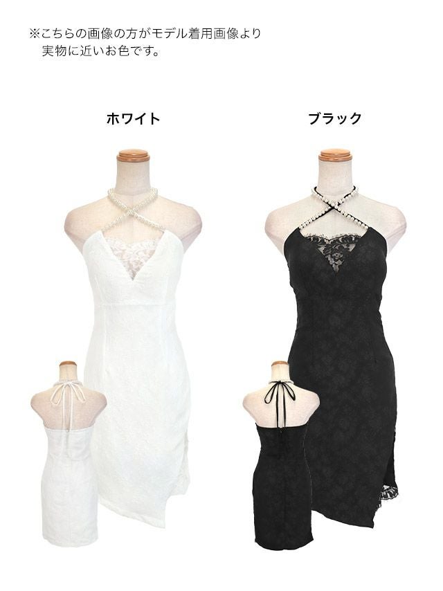 パールホルターネックフラワー総レースアシメ膝丈タイトドレスのカラーバリエーション