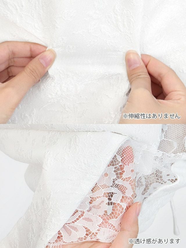 パールホルターネックフラワー総レースアシメ膝丈タイトドレスのイメージ画像3