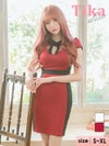 5. バイカラーデザインネックリボンカットアウトストレッチ半袖タイトミニドレス (Sサイズ~XLサイズ) (黒崎みさ/キャバドレス着用)