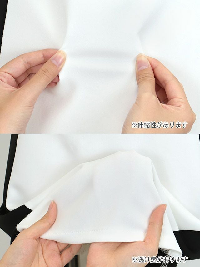 バイカラーデザインネックリボンカットアウトストレッチ半袖タイトミニドレスのカラーバリエーション