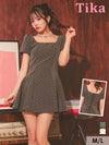 私服でも着れる万能ワンピ♡ ワンピース Aライン ミニドレス 上品 ドット柄 半袖 パフスリーブ スクエアネック バックレースアップ ブラジャーのまま キャバドレス (若林萌々着用)