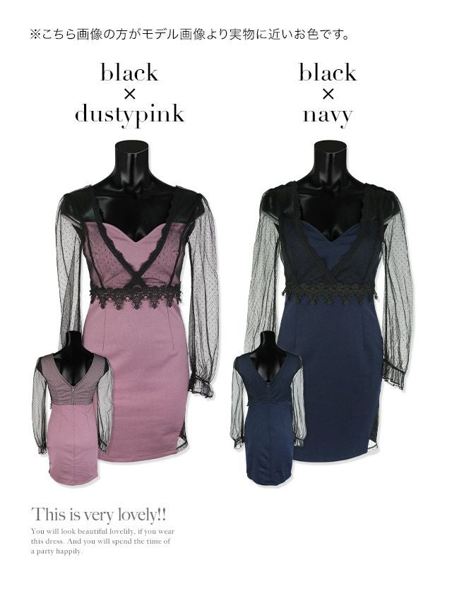 シアードット刺繍レース長袖タイトミニドレスのカラバリ