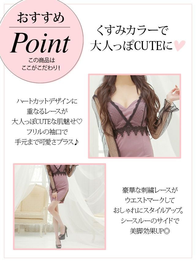 シアードット刺繍レース長袖タイトミニドレスの商品説明