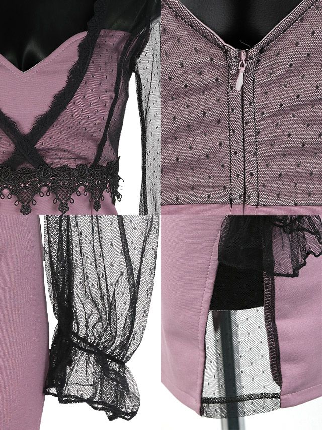 シアードット刺繍レース長袖タイトミニドレスのブツどり