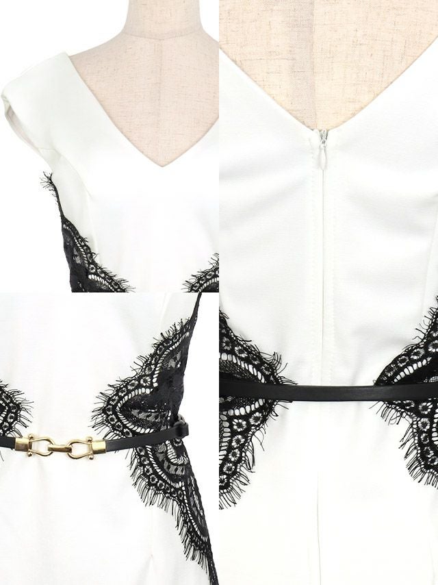 Vネックノースリーブくびれスカラップレースベルトタイトミニドレスの商品詳細画像1
