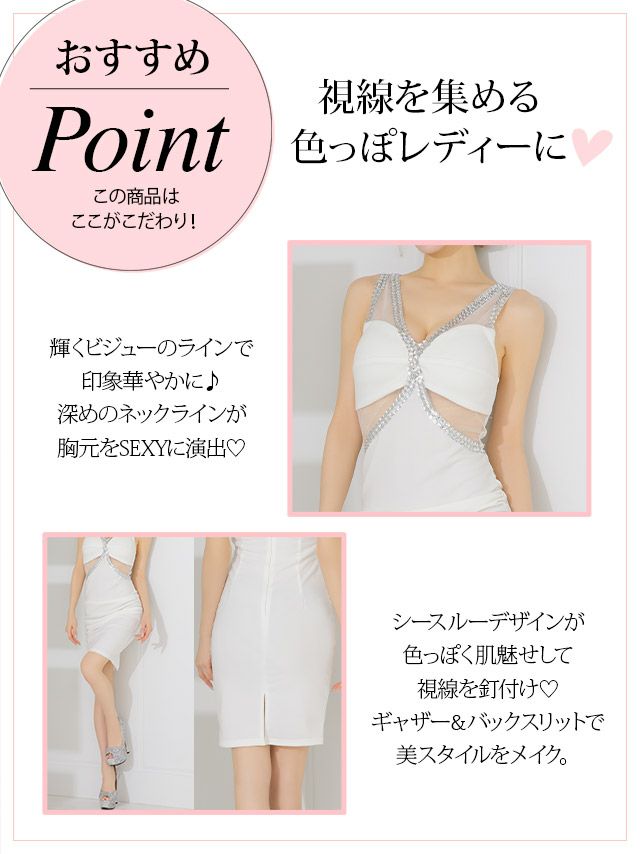 ウエストシースルー美スタイルビジューラインノースリーブタイトミニドレスの商品特徴