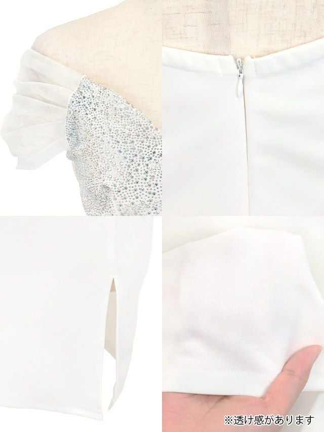 オフショルダーチュールストーンビジューストレッチスリットタイトミニドレスのメイン画像