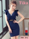 3. [SUPER SALE] ウエストシースルーフリル袖ウエストカットワンカラータイトミニドレス (Sサイズ~Lサイズ) (さくりな/キャバドレス着用)