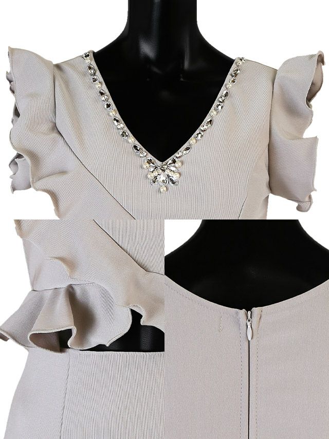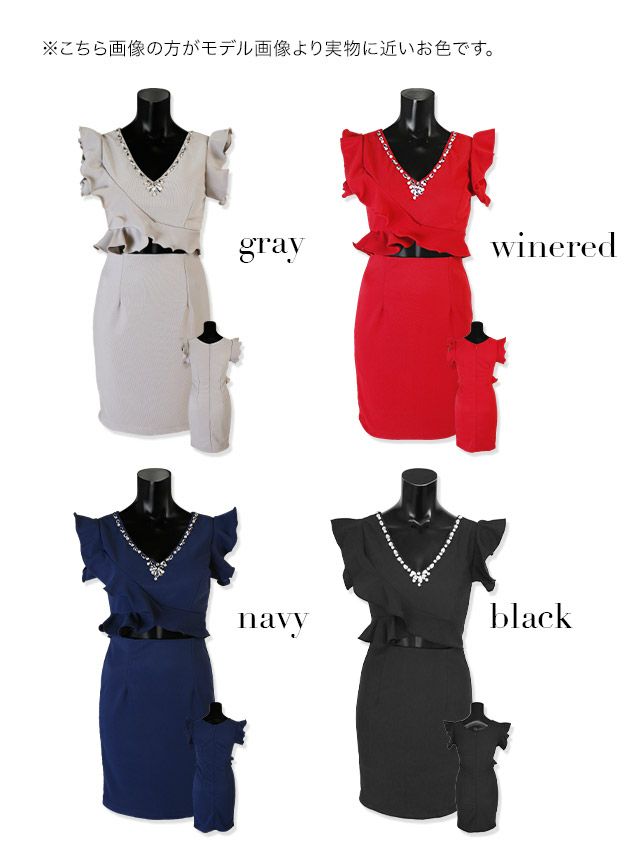 4. ウエストシースルーフリル袖ウエストカットワンカラータイトミニドレス (Sサイズ~Lサイズ) (さくりな/キャバドレス着用)