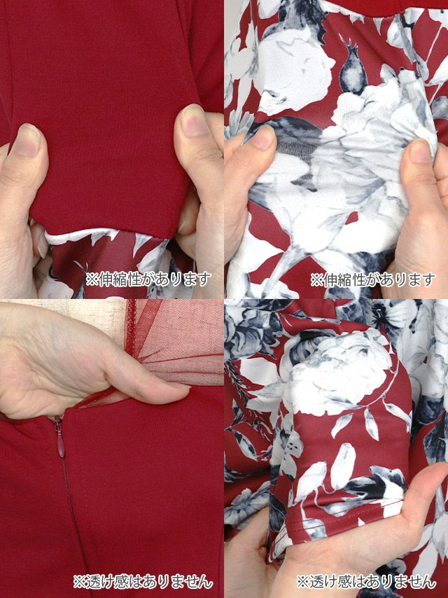 4. ウエストベルト付き半袖シアーハートカットフラワープリントネックリボンハイウエスト切替フレアミニドレス (Sサイズ~XXLサイズ) (浦西ひかる/キャバドレス着用)