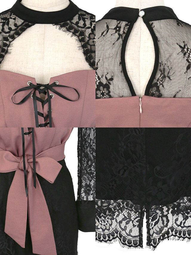 編み上げバストカットウエストリボンスカラップレース長袖タイトミニドレスのカラーバリエーション