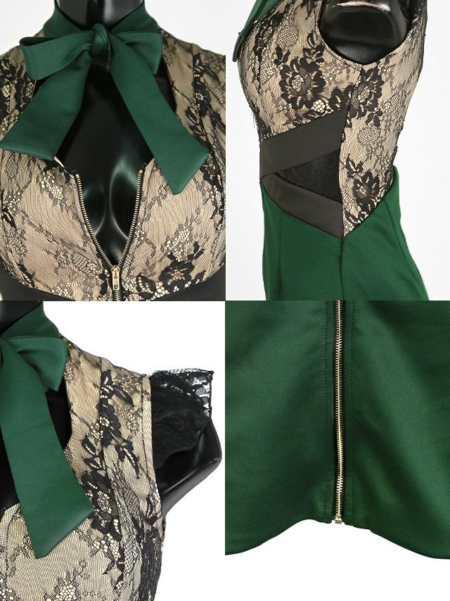 キャバドレス ミニドレス タイトドレス 大きいサイズ Tika ティカ チョーカーネックリボンフラワーレース切り替えフロントファスナータイトミニドレス