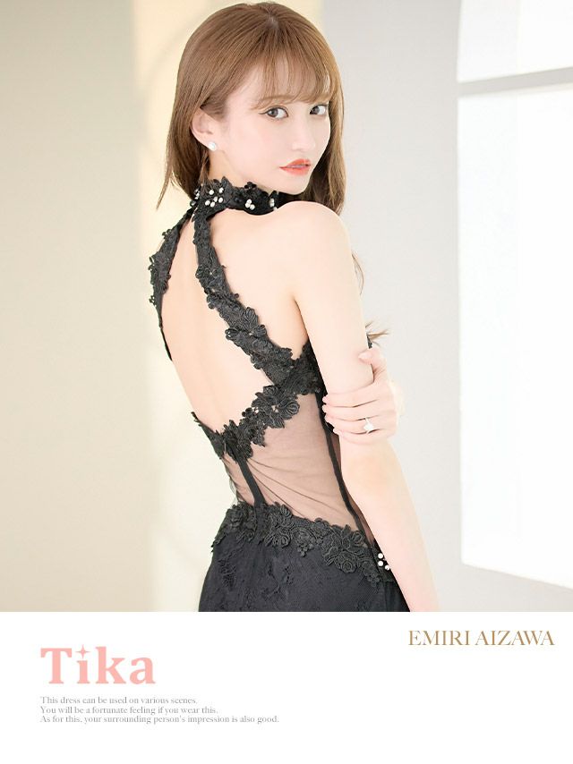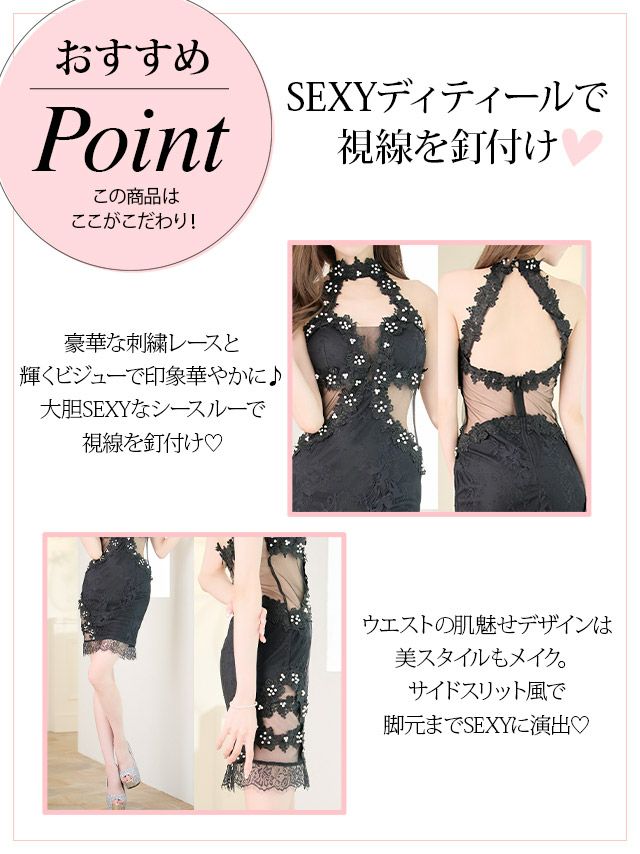 立体フラワーホルターネックパールビジューシアーくびれ切替セクシータイトミニドレス (Sサイズ~Lサイズ) (愛沢えみり/キャバドレス着用)