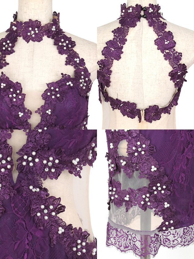 4. 立体フラワーホルターネックパールビジューシアーくびれ切替セクシータイトミニドレス (Sサイズ~Lサイズ) (愛沢えみり/キャバドレス着用)