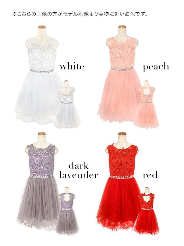 ノースリーブバックハートカットアウトフラワー刺繍ウエストビジュー切替チュールフレアミニドレスのカラーバリエーション