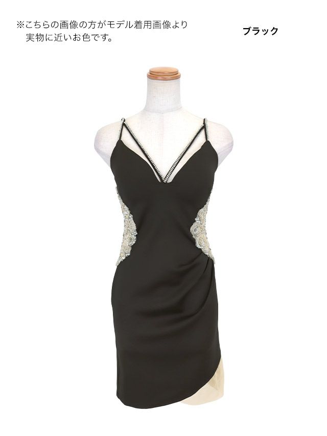 コードキャミソールシアービジューくびれストレッチタイトミニドレスのカラーバリエーション