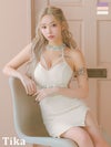 5. ミニドレス ツイード バストコード 谷間 くびれ透け ビジュー ホルターネック ピンク タイト キャバドレス (重川茉弥着用) [tk-mdjj93018b]