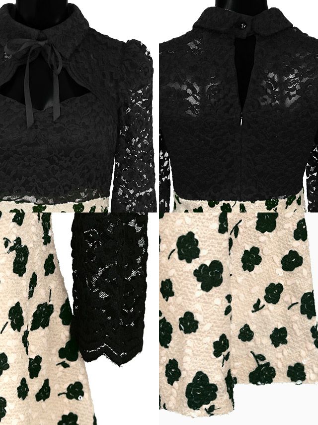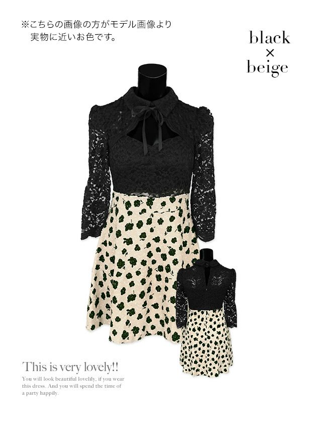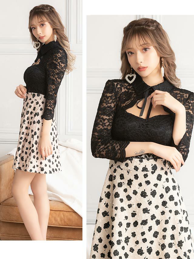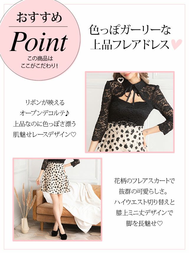 花柄で可愛い雰囲気に上半身は黒のレースと程よい肌見せで
