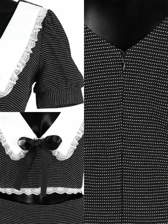 [韓国ドレス] ミニドレス 襟付き リボン 半袖 パフスリーブ ウエストカット モノトーン タイト キャバドレスの商品特徴1