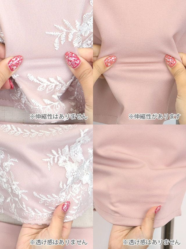 フリル袖バストジップビジューフラワー刺繍チュールセットアップタイトミニドレスのカラーバリエーション