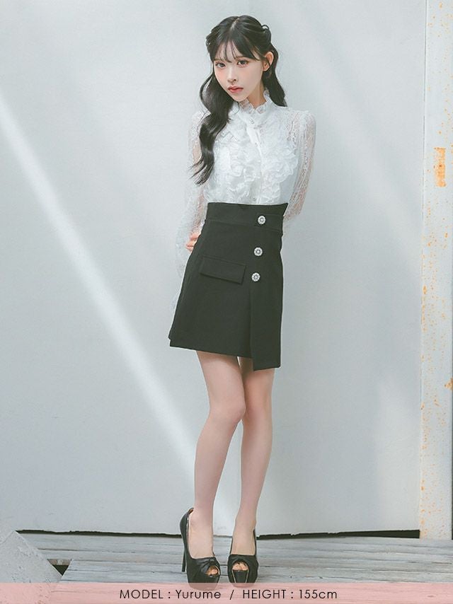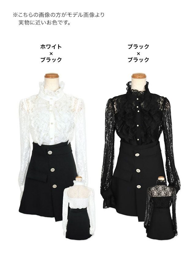 5. [韓国ドレス] セットアップ フリルレース 長袖 ワンピース 胸元カバー ブラウス スカートパンツ Aライン キャバドレス (PyunA.着用) [tk-mdsks003a]