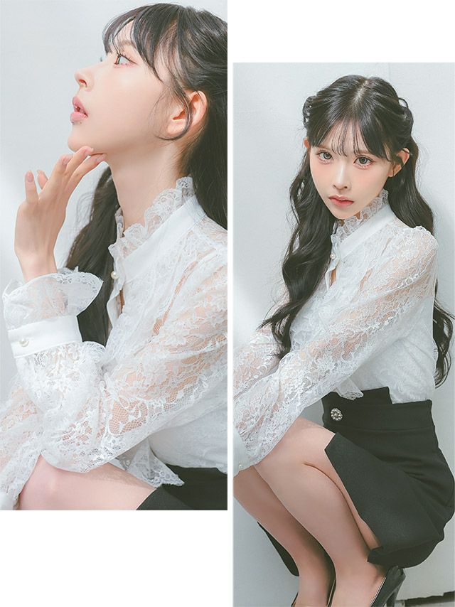 3. [韓国ドレス] セットアップ カップ付きキャミソール スタンドネック フリルレース 長袖 袖あり ブラウス スカートパンツ フレアミニドレス (Sサイズ~Lサイズ) (PyunA./キャバドレス着用) [TikaPimil]