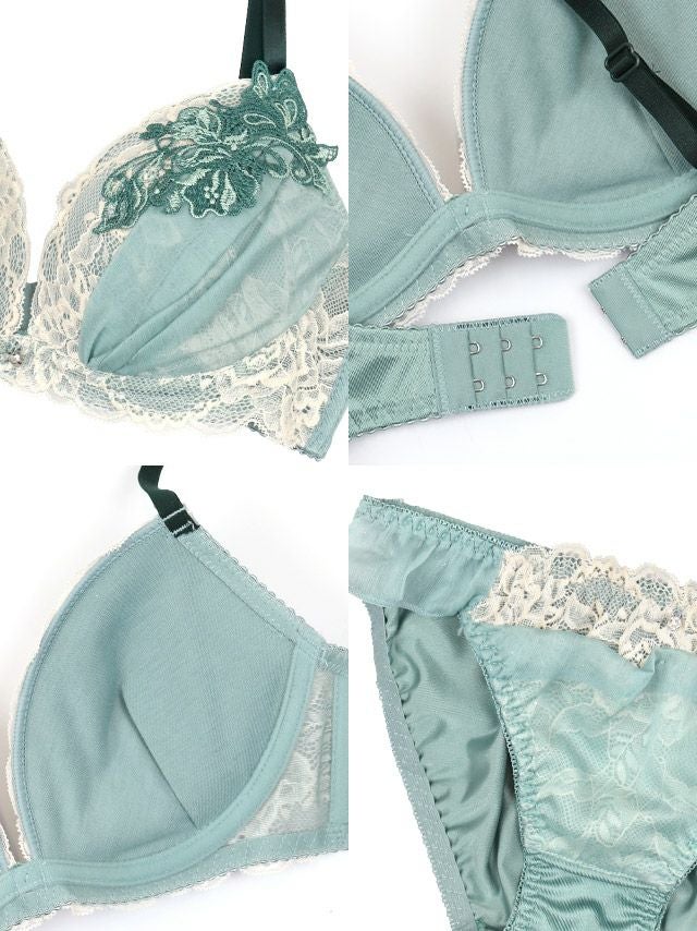 ホワイトレース ボタニカル刺繍 ワイヤー ブラジャー ショーツ 2点セットの詳細画像