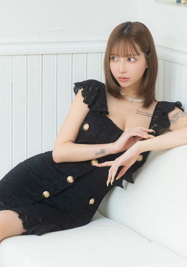 他の画像を見る 気品溢れるレースドレス♡ [韓国ドレス] ミニドレス シンプル 総レース 大人 ノースリーブ ストレッチ ブラジャーのまま ネックリボン ゴールドボタン 裾フリル 黒 タイト キャバドレス (PyunA.着用) [tk-mdk6116] ¥ 14,080 税込 詳細を見る お気に入りに追加
