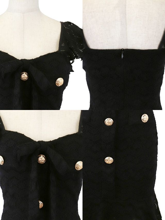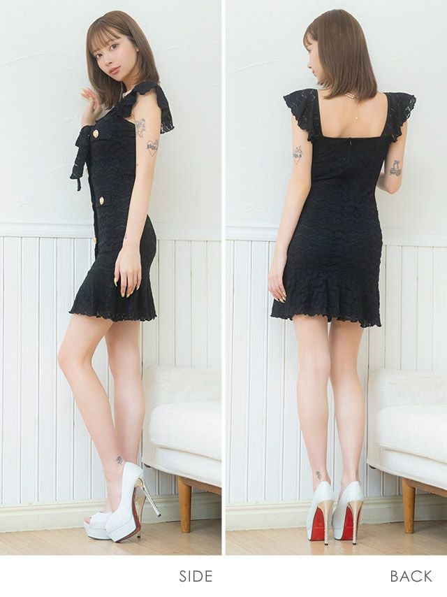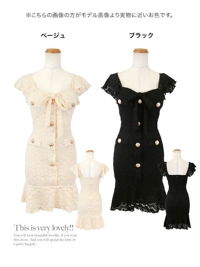 韓国ドレス ミニドレス シンプル 総レース 大人 ノースリーブ ストレッチ ブラジャーのまま ネックリボン ゴールドボタン 裾フリル タイト キャバドレスのディティール1 韓国ドレス ミニドレス シンプル 総レース 大人 ノースリーブ ストレッチ ブラジャーのまま ネックリボン ゴールドボタン 裾フリル タイト キャバドレスのディティール2