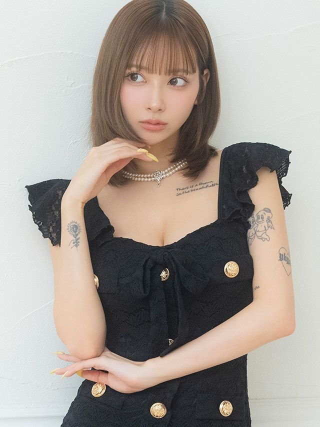 他の画像を見る 甘さたっぷり♡ [韓国ドレス] ミニドレス シンプル 総レース ガーリー ノースリーブ ストレッチ ブラジャーのまま ネックリボン ゴールドボタン 裾フリル タイト キャバドレス (黒崎みさ着用) [tk-mdk6116a] ¥ 14,080 税込 詳細を見る お気に入りに追加