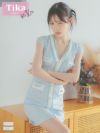 3. [ゲリラセール] [韓国ドレス] ツイードバイカラーゴールドボタン半袖タイトミニドレス (Sサイズ~Lサイズ) (緩苺/キャバドレス着用) [TikaPimil]