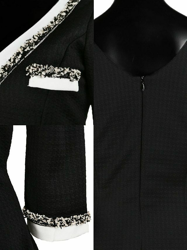 5. [韓国ドレス] 異素材 モノトーン 袖あり 七分袖 ツイード フレアミニドレス (Sサイズ~Lサイズ) (黒崎みさ/キャバドレス着用) [TikaPimil]