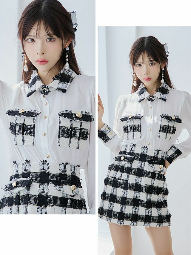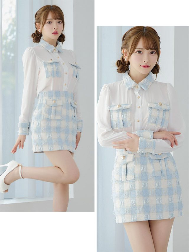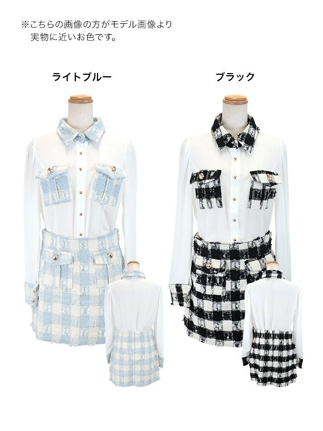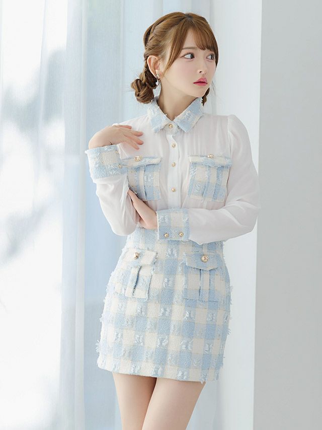 他の画像を見る 万能に着回せるお洒落ドレス♪ [韓国ドレス] 襟付き 長袖 袖あり シアーブラウス ツイード調 ブロックチェック柄 セットアップ タイトミニドレス (Sサイズ/Mサイズ) (黒崎みさ/キャバドレス着用) [TikaPimil] ¥ 16,500 税込 詳細を見る お気に入りに追加