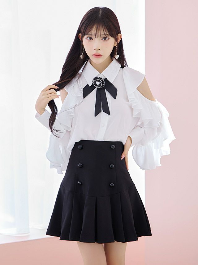 他の画像を見る 個性的で可愛いセットアップドレス♪ [ゲリラセール] [韓国ドレス] ネックリボンタイ付き肩出し 二の腕カバー長袖 袖ありフリルブラウス×ダブルボタンプリーツスカートセットアップドレス (Sサイズ~Lサイズ) (黒崎みさ/キャバドレス着用) [TikaPimil] ¥ 16,500 ¥ 7,332 税込 詳細を見る お気に入りに追加