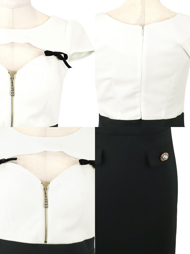 タイトミニドレス 谷間 ストレッチ 半袖 ウエストカット ジップ リボン バイカラーのディティール1